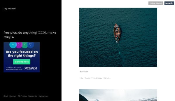 Picjumbo, relativement récent, publie une nouvelle photo libre de droits chaque jour. Depuis 2013, le site a vu ses images téléchargées plus de 48 000 fois. Une bonne adresse pour renouveler régulièrement ses visuels.