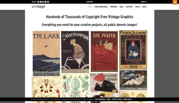 Viintage propose des affiches et dessins anciens, tombés dans le domaine public. Idéal pour donner une touche rétro à ses publications.