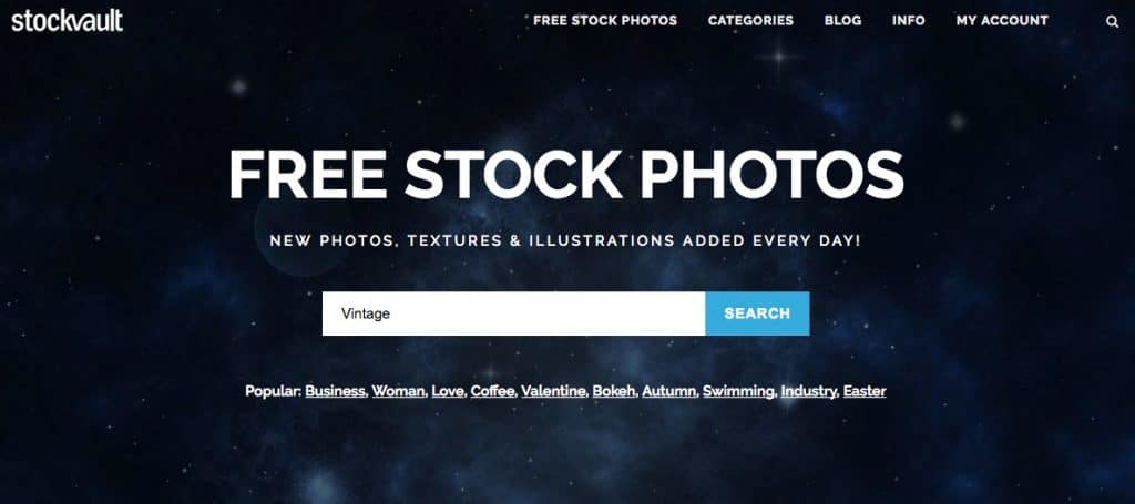 Stockvault met à disposition un peu moins de 100 000 photos gratuites. Le catalogue mêle photos, graphiques et illustrations, avec une navigation intuitive. Que ce soit pour un site web ou une brochure, la diversité des thèmes facilite la recherche.